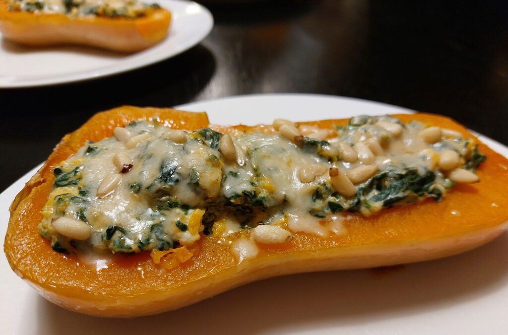 Weinig koolhydraten, niet super vet en wel heel vullend! Daarbij ziet het er ook nog eens heel culinair uit 🙂 Ontdek onze gevulde pompoen met spinazie en Ricotta. Zonder vlees en met pijnboompitjes!