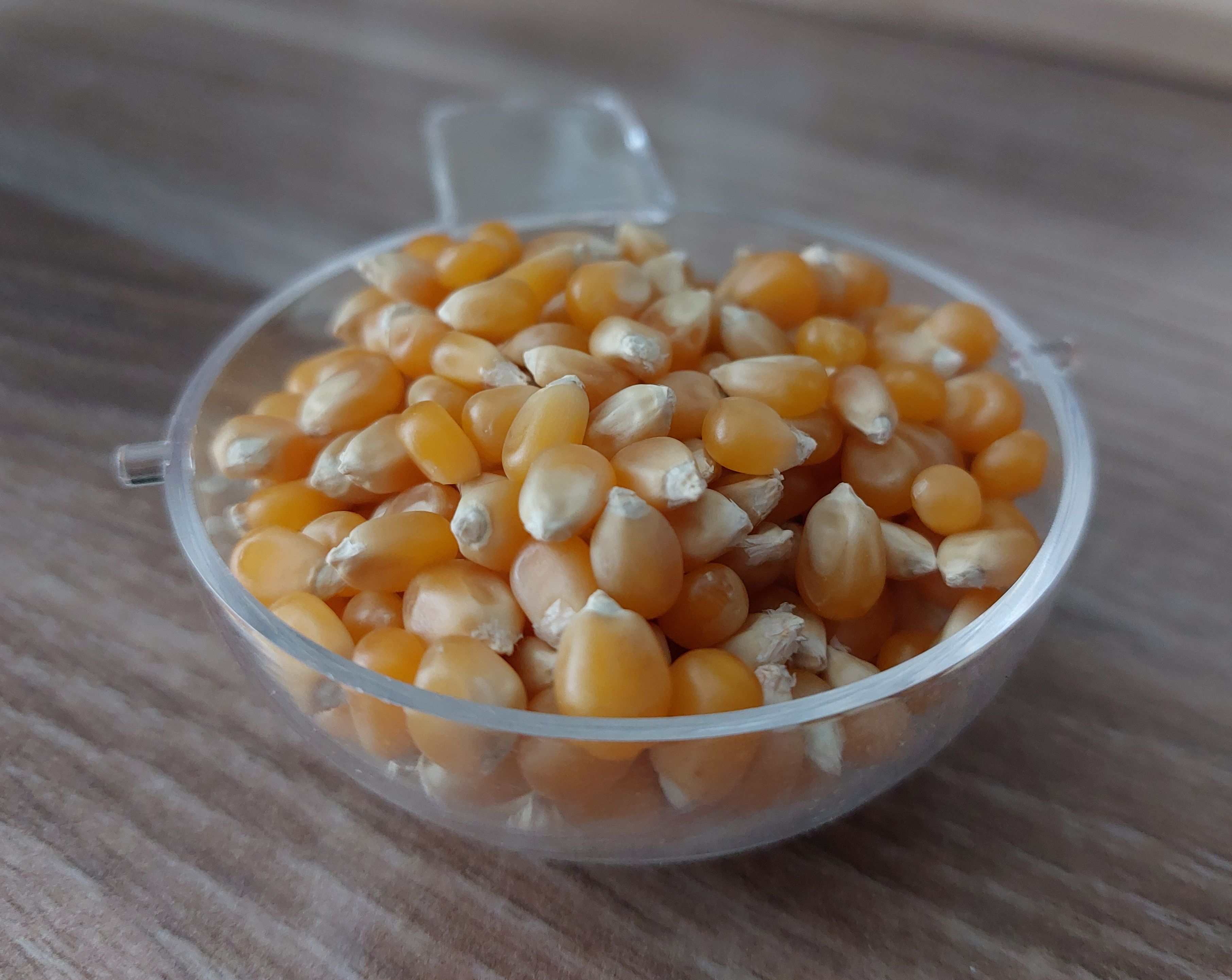 Zorg voor maïskorrels (Popcorn Maïs), eventueel kruiden naar keuze (zoals Caprese kruidenmix) en een hetelucht popcornmaker of wokpan.
